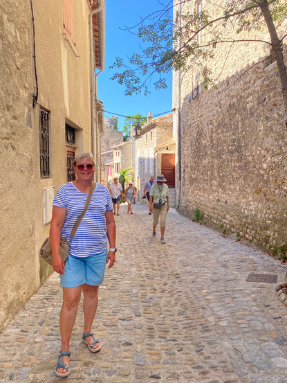 Am Samstag nach dem Frühstück nehmen wir Abschied von den Nachbarn, von Harald und Petra und fahren bei ruhigem Wetter nach Viviers. Die Strecke ist gar nicht so weit, nur 55 km stromabwärts, aber wir sind insgesamt fast achteinhalb Stunden unterwegs. Heute müssen wir jeweils an den 3 Schleusen sehr lange warten. Das ist in der prallen Sonne echt anstrengend. Wir wechseln mehrfach zwischen Kanal und Rhône. Die Landschaft ist teilweise zerfurcht von Steinbrüchen, wir passieren Atomkraftwerke im Wechsel mit hübschen kleinen Dörfern. Auf den Hügeln ist hier und da eine Burgruine zu sehen. Erst gegen 17 Uhr sind wir in Viviers. Nachdem wir fest gemacht haben, erfahren wir, dass die Capiainerie erst ab 18:30 Uhr besetzt ist. Wir nutzen die Gelegenheit, den auf einem Hügel gelegenen Ort anzuschauen. Was wir hier sehen, übertrifft unsere Vorstellungen. Viviers ist ein vollständig erhaltener Ort mit Gebäuden aus dem 14. bis 17 Jahrhundert. Insgesamt leben hier nur ca. 4.000 Menschen. Eine Gesellschaft bemüht sich, das Kulturerbe für die Nachwelt zu erhalten. Die alten Gemäuer sind bewohnt und teilweise restauriert. Nach unserer Ansicht kostet die Erhaltung des Ortes mehrere hundert Millionen und wir wünschen sehr, dass Mittel anstelle in Kriegsmaterial in die Denkmalpflege investiert werden. Die Reisenden aus 3 am Kai liegenden Flusskreuzfahrtschiffen durchstreifen mit uns den Ort, der an jeder Ecke Geschichte atmet. Fasziniert kehren wir von unserem Ausflug zurück. Nun können wir uns registrieren lassen und bezahlen. Leider fällt kurz danach der Strom am Kai aus, so dass wir unsere Klimaanlage nicht nutzen können. Die Kreuzfahrtschiffe sind zum Glück abgereist, aber ein Schiff fährt noch spät ein und bleibt bis ca. Mitternacht. Wir sind todmüde und würden gerne schlafen. Dagegen spricht aber die ungeheure Hitze und der laufende Generator des Kreuzfahrers, der uns hemmungslos zudröhnt und vollstänkert. Irgendwann gegen Mitternacht wird es kühler und der Kreuzfahrer ist weg. Wir können etwas schlafen.