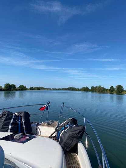 Am Sonntag den 12.06. verlassen wir den Canal du Rhône au Rhin. An der vorletzten Schleuse machen wir am Ponton im Oberwasser fest, da wir den Schleusengang zu Berg abwarten müssen. In der Schleuse befindet sich eine Peniche, die den Schleusenraum vollständig ausfüllt. Offensichtlich ein Gästeschiff, denn auf dem Vorderdeck sind edel weiße Tischdecken und blitzende Gläser gedeckt. Wir müssen schlucken, denn an den vorangegangenen Engstellen hätten wir dem Kahn nicht begegnen wollen. Unsere letzte Kanalschleuse, die Ecluse 75 ist nicht mehr automatisch. Der Klassiker, wir trudeln dort exakt zur Mittagspause ein, d.h. fast eine Stunde warten. Danach wird automatisch geöffnet und wir können einfahren. Völlig unspektakulär geben wir die Fernbedienung wieder ab und fahren unmittelbar nach der Schleuse auf die Saône zu Tal. Nur 3 km später wollen wir in den Hafen von Saint-Jean-de-Losne. Es ist wieder gewittrig schwül an die 30 Grad. Wir wollen in den Hafen, um eventuell wieder mal Wäsche zu waschen und eine gute Dusche zu nehmen. Daher legen wir nicht vor der Stadt am Kai an, zumal hier auch kaum Platz für uns ist, sondern biegen in den Canal du Bourgogne ein, um vor der Schleuse zum Hafen von H2O zu fahren. Auf dem Gelände haben eine weitere Firma, sowie "Le Boat" Stege. Der Hafen bietet eine Reihe freier Plätze an, ist jedoch völlig verkrautet. Im ersten Moment scheint es uns unmöglich einzufahren. Dann entscheiden wir, doch auf einen Platz am äußeren Rand zu gehen. Das Boot blockiert beim Rückwärtsfahren, kommt dann aber mit einem größeren Schub frei. Der Hafenmeister ist nicht da, somit können wir auch nicht in den Club, in dem sich die Waschmaschinen befinden. Der Hafenmeister kommt 17:00 Uhr, aber Waschen ist trotzdem nicht, da der Club ab 18.00 Uhr verschlossen wird. Bei der Hitze haben wir keine Lust noch in die Stadt zu gehen. Ein junger Mann mit einer Angel kommt vorbei und tut so, als wenn er angeln will - wenig glaubwürdig. Das macht er so mit allen Stegen. Wir liegen relativ allein zwischen alten Pötten, die zum Verkauf stehen. Das veranlasst uns, doch noch mal umzusetzen, so dass wir zwischen Booten liegen, die besetzt sind. Hier fühlen wir uns sicherer.