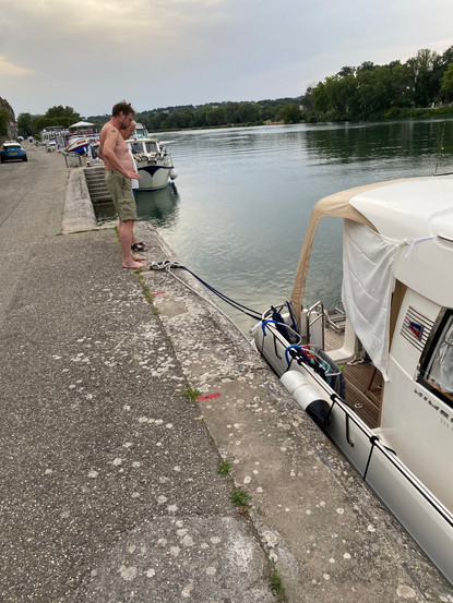 Nachdem wir unser Anlegemanöver in Avignon verdaut haben machen wir uns auf den Weg in die Stadt. Wir liegen direkt unterhalb des Papstpalastes und erklimmen unmittelbar nach Überquerung der Hauptstraße die Treppen hinauf zum Palastgarten. Von hier haben wir einen schönen Blick auf die Rhone und unseren Anfahrtsweg. Es ist immer noch sehr heiß. Der Palast ist teilweise eingerüstet und wird restauriert bzw. instand gehalten. Wir planen keine Besichtigung, da wir uns noch gut an die tolle Audioguide geführte Tour vor einigen Jahren erinnern. Stattdessen lassen wir die Atmosphäre rund um den Palast auf uns wirken. Dazu setzen wir uns auf einen Drink auf den Platz vor dem Palast. Die junge poppige Kellnerin mit ihrem elektronischen Bestellsystem steht ganz im Gegensatz zur Wirkung des Palastes. Auf unserem weiteren Spaziergang können wir uns des Eindrucks der „Touristenfallen“ in Form der Restaurantreihe auf der Rue de la République nicht ganz erwehren. Erst als wir wieder näher in Richtung unserer Liegestelle kommen, haben wir das Gefühl, auch Familien aus der Stadt in den Restaurants zu entdecken. Die teuren Boutiquen in den kleinen Straßen sind im Wesentlichen von Touristen besucht. Als wir am nächsten Morgen einen kleinen Citysupermarkt aufsuchen, bemerken wir, dass wir hier abseits des touristischen Lebens sind. Am Montag warten wir leider vergeblich auf unseren Motorservice. Über Moritz bekommen wir Bescheid, dass der Service zu einem Notfall gerufen wurde. Wir versuchen noch zu erreichen, dass wir danach noch bedient werden, aber das klappt nicht. Ich komme endlich mal dazu, ein Buch zu lesen. Wir chillen ordentlich vor uns hin. Am Dienstag vormittag klappt es dann mit dem Service. Der Mitarbeiter von Volvo Pentagon arbeitet konzentriert und sachkundig. Gegen Mittag ist er fertig und will das Entgelt von ca. 1250 € von uns in Bar haben. Das haben wir natürlich nicht bei uns, auch keine Schecks, denn die gibt es bei uns nicht mehr. Also einigen wir uns, in der Mittagspause Geld holen zu gehen. Gesagt, getan, aber es erweist sich als Problem. Die auf unserer Karte verzeichneten Banken existieren mit ihren Filialen nicht mehr an den alten Standorten. Nachdem wir 2 Mal im Sauseschritt eine Runde durch Avignon gedreht haben, bei über 30 Grad Mittagshitze, erfahren wir, dass es auf der Rue de la République noch Banken gibt. Dort erhielten wir allerdings pro Karte nur 300 EURO und ich hatte meine Karten nicht dabei. Also wieder zurück zum Boot, meine Karten geholt und auf zur 4. Runde durch die Stadt. Als ich noch unterwegs bin ruft Frank mich an, dass er seinen Führerschein hinterlegt hat und Volvo Penta am nächsten Morgen um 7:30 Uhr das restliche Geld bei uns einsammelt. Ich bekomme mit meiner EC und Kreditkarte auch jeweils nur 300 €, kann aber einige Minuten später mit meiner Kreditkarte weiter abheben, so dass wir jetzt genügend Bares haben. Nach der Aktion erholen wir uns erst einmal bei einer Mittagsruhe. Abends machen wir noch mal einen Stadtspaziergang und wollen Essen gehen. Irgendwie finden wir die Restaurants nicht wieder, die nicht so nach Touristenfallen aussehen. Am Ende sitzen wir jedoch ganz nett nahe der Stadtmauer und genießen unseren letzten Abend in Avignon.