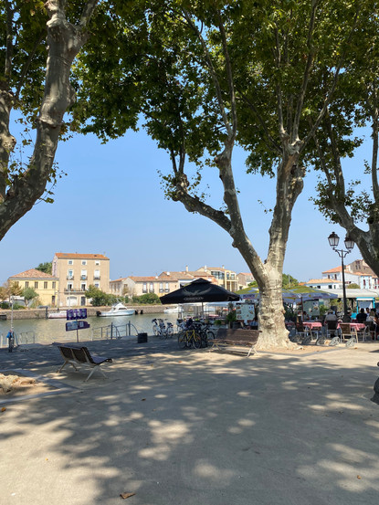 Nicht nur die Ausflugsschiffe sind im Vorfeld des Hafens unterwegs. Jegliche Wassersportvergnügungen vom Fallschirmfliegen, gezogen von einem schnellen Motorboot, sich von einem Motorboot mit einem Luftreifen durchs Wasser ziehen lassen, Jetskiing u.s.w. lassen vor der Einfahrt einen ordentlichen Wirrwarr entstehen. Im Hafen geht es ordentlich zu. Wir halten hinter den Liegestellen für Boote, die Tanken wollen. Es gibt keine Verständigungsschwierigkeiten in der freundlichen Capitainerie und obendrein bekommen wir als Gastgeschenk eine Flasche Rosé, welche wir gleich als “Anleger“ köpfen. Wir können uns entscheiden, Nahe der Hafeneinfahrt bei der Capitainerie zu liegen oder weiter drin im Zentrum des Hafens, näher an die Stadt heran. Wir entscheiden uns für letzteres. Ohne langes Zögern machen wir uns gleich auf den Weg zu einer der Badebuchten. Der Sand hier ist schwarz. Nach der langen Fahrt und dem Weg durch die Neubauten der Stadt tut das Baden gut, obwohl das Wasser auch gut 26 Grad warm ist. Wir essen „zu Hause“ und machen anschließend noch einen kleinen Bummel am Hafen entlang. Wir schieben uns mit anderen Touristen an den Buden und Restaurants vorbei und erkunden bei der Gelegenheit, wo die für uns am nächsten gelegenen sanitären Einrichtungen sind. Zu weit - finden wir und drinnen zu warm, so dass wir wieder alles an Bord nutzen und uns mit unserem neu erworbenen Brausekopf (Gartenequipment) direkt am Steg abbrausen. Wir sind genügsam geworden. Am Freitag geben wir Bescheid, dass wir noch eine Nacht bleiben. Wir wollen das alte Agde anschauen. Die Wohn-, Ferien-, Sport-, Kongress- und Gewerbebauten erstrecken über mehrere Ortstiele über das gesamte Cap. Im Westen liegt Le Grau d´Agde am Fluß L´Herault, der im Mittelmeer mündet und den Canal du Midi kreuzt. Um zum Kanal de Midi zu kommen, muss man in Agde in einen kleinen Seitenkanal abzweigen. Von dort gelangt man zu der einzigen bekannten Rundschleuse, die insgesamt drei Ausgänge hat. Wir haben uns in Agde die Zufahrt zu dem abzweigenden Kanal angesehen, da wir eventuell bereits ab Agde über Binnenwasserstraßen fahren wollen. Über den Étang de Thau kommt man auch binnen nach Sète und kann von dort weiter über den Canal du Rône a Sète und nach einer Schleuse, über ein Stück Petite Rhône, bei Arles in die Rhône gelangen. Irritiert hat uns, dass wir keine Schifffahrtszeichen, weder bei der Brückendurchfahrt noch bei der Kanaleinfahrt gesehen haben. Hier werden wir uns noch zu erkundigen haben.
