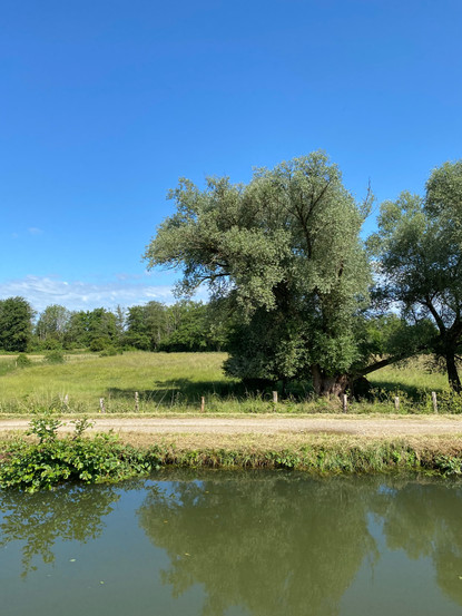 Für uns war es eine gute Entscheidung, hier in der Natur zu liegen. Wir hören lediglich Vogelgezwitscher und das Rauschen von Wasser, welches aus der Schleuse kommt.