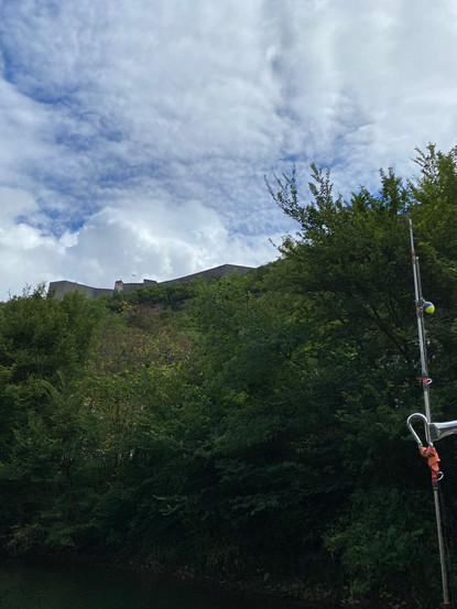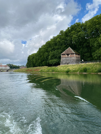 Auch heute gibt es wieder etwas zum Aufwachen. Unsere erste Selbstbedienungsschleuse. Zum Glück steht ein älterer Herr am Rand, der mich mit Handzeichen einweist. Man schließt erst die Schleusentore hinter sich. Dazu bewegt man wie ein Galeerensträfling ein Rad, danach lässt man die Tore noch tiefer mittels Kurbel hinab. Beides jeweils auf der Backbord- und Steuerbordseite. Anschließend wechselt man zum unteren Tor. Dort hebt man zuerst die Tore und öffnet sie anschließend. Also alles in umgekehrter Reihenfolge, wie oben. Während wir schleusen, schaut uns eine Schulklasse zu und bekommt erklärt, wie eine Schleusung funktioniert. Wir winken zum Abschied. Jetzt durchfahren wir die Besanconschleife vollständig und sehen die Stadt und die Zitadelle aus einer anderen Perspektive. Schön war es.