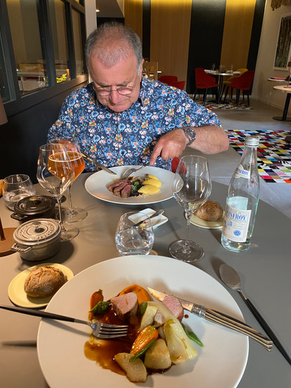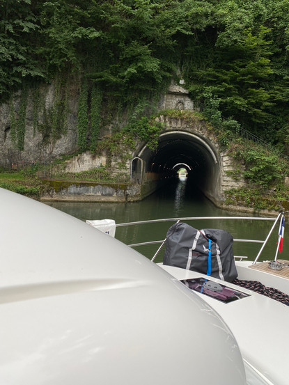 Auf unserem heutigen Weg treffen wir die ersten Mietboote. Wir durchfahren einige enge Stellen. Frank orakelt, dass immer, wenn man nicht damit, rechnet ein Boot entgegenkommt. Und es kommt. Eine Peniche an der wir uns eng an eng vorbeiquetschen. Ab jetzt darf Frank keine Vermutung mehr äußern, denn sie tritt ein. Außerdem durchqueren wir heute unseren ersten Tunnel. Wir machen eine Mittagspause nach einer Schleuse am Warteponton. Dann entschließen wir uns bis Saint-Vit. weiterzufahren. Es gibt einen „Halte Nautique“, den wir auch finden. Wir müssen hinter einer Landzunge den Kanal verlassen. Der Anleger liegt um die Ecke hinter einer Mühle. Hier liegen 4 alte französische Boote dauerhaft fest. Man kann sich nur hinten fest machen oder längs liegen. Nach einem erfolglosen Versuch vorne den Anker festzubekommen, entscheiden wir uns, das Boot mit Leinen in die Längsposition zu ziehen. So können wir uns gut festmachen, ohne noch mehr Untergrund aufzuwühlen, denn die Tiefe ist hier mehr als knapp. Gerade als wir fest sind, kommt jemand, der uns fragt, ob wir uns angemeldet hätten. Haben wir natürlich nicht. Wir hatten auch keine Information, wo das möglich gewesen wäre. Nach einem längeren Telefonat dürfen wir bleiben. Im Ort soll es ein Restaurant geben. Wir beschließen, dorthin zu laufen. Es sind ca. 2,5 km. Laut Internet ist das Restaurant durchgehend geöffnet. St. Vit ist ein sehr aufgeräumter hübscher Ort. Wir finden das Restaurant, welches 2022 zwei Kochmützen Table de Chef Gault & Millau hat. Das Restaurant öffnet 19:00 Uhr, so dass wir noch etwas durch den Ort streifen. Bevor die Eisenbahn Einzug hielt, gab es in St. Vit eine wichtige Poststation, an der die Pferde gewechselt wurden. Das Haus atmet noch die alte Zeit. Schräg gegenüber gibt es ein altes Weinlager, welches heute für Kulturelles genutzt wird. Punkt 19:00 Uhr sind wir typisch Deutsch an dem Restaurant und werden kurz darauf freundlich eingelassen. Die Speisekarte verspricht viel. Ich nehme ein 3 Gänge Menü und Frank Entrecôte. Ich will nicht zu weit ausholen, aber mit Gruß aus der Küche am Anfang und Ende und Speisen, die den Gaumen verwöhnen, sind wir rundum zufrieden. Bis nach 20 Uhr sind wir alleine im Restaurant. Und dann geht es los. Nach und nach füllt sich der Laden. Familien kommen mit Kind und Kegel sowie verabredete Familien. Da drängelt es uns bereits auf den Rückweg. Beim Verlassen der Liegestelle waren wir nicht sicher, ob die Zugangstore geschlossen werden. Wir bezahlen also, als alle anderen gerade mal beim Aperitif sind. Der Rückweg erscheint uns viel kürzer, geht nun aber auch bergab. Der Blick in die Landschaft ist herrlich. Ein schöner Abend neigt sich dem Ende.