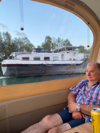 Heute am letzten Tag im Mai verlassen wir den Rhein endgültig und fahren in den Canal du Rhône au Rhin ein. Bis dahin sind es noch drei Schleusen, Vogelgrun, Fessenheim und Ottmarsheim. Während wir noch auf dem kanalisierten Rhein fahren, erarbeite ich mir mit Hilfe des Google Übersetzers französische Sätze, die wir im weiteren Verlauf unserer Tour einsetzen. Ich muss es auch gleich ausprobieren, denn wir kündigen uns bei der Schleuse Niffer am unmittelbaren Übergang zum Canal du Rhône au Rhin an. Ich spreche französisch, leite aber den Text immer ein: "Wir sind ein Boot aus Deutschland" in der Hoffnung der Partner lenkt ein und versucht sich in Deutsch. Manchmal klappt es, manchmal nicht. Der Ansprechpartner für die Schleusen Niffer und Ottmarsheim lässt mich zappeln. Aber ich bekomme das hin. Obendrein veräppelt er mich noch, ob wir "toutsuite" passieren wollen, das heißt sofort. Na ja, Spaß muss sein, ich erkläre, dass wir noch ca. 10 km vor Ottmarsheim sind.