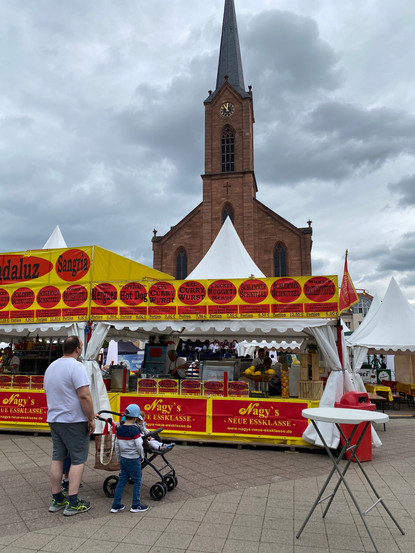 Da wir nun mehrere Tage am Petersee verbringen, werden wir nicht im ca. 17 km. entfernten Kehl festmachen, sondern erkunden Kehl und Straßburg per Rad. Bis Straßburg sind es ca. 25 km. Wir fahren zunächst auf dem Damm am Rhein. Ab dem Hafengebiet Kehl geht es dann weiter auf dem Radweg. Wir sind früh dran und erleben die ersten Aktionen des über 4 Tage andauernden Festes mit Beginn am Herrentag. Das Stadtzentrum ist voll von Buden und 2 Bühnen, auf denen sich Blasmusik eingefunden hat. Das erste Bier fließt und Steaks und Würstchen grillen. Das ist jedoch nicht unser Ziel und wir fahren weiter nach Straßburg. Unser Weg führt uns durch den Garten der zwei Ufer über die Fußgänger- und Fahrradbrücke über den Rhein, die Kehl und Straßburg verbindet. Der Garten wurde im Rahmen der Landesgartenschau 2004 eröffnet.