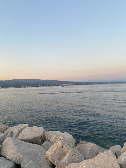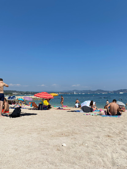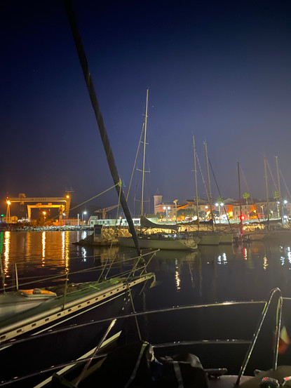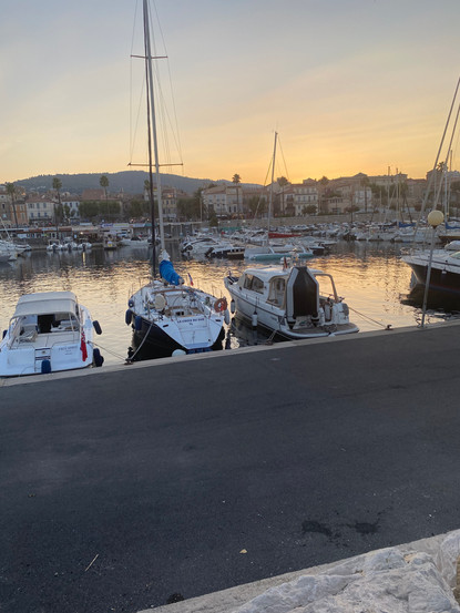 Nach dem Abendbrot wagen wir einen Aufstieg auf die den Kai begrenzende Mole. Von hier aus können wir beobachten, dass diverse Boote vor dem Strand festgemacht haben und dort offensichtlich über Nacht bleiben. Franks Plan ist, dass wir morgen auch irgendwo ankern, bevor wir in einen Hafen einlaufen. Wir werden in Richtung Bandol fahren. Auf dem Weg dorthin gibt es mehrere Ankermöglichkeiten.