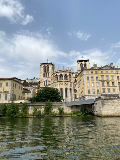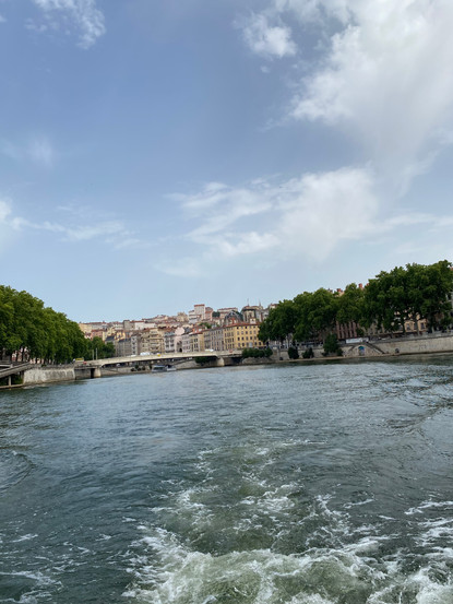 Unser Berlin-Trip zählt zu unseren schlechteren Reiseerfahrungen. Wir werden insgesamt 4-mal umgebucht, verbringen mehrere Stunden in Telefonschleifen bei der Lufthansa und Austria Airlines, unser Flug wird nach dem Einchecken gecancelt, am Ende bekommen wir einen Flug für unsern Zieltermin, unsere bereits bestätigten und eingecheckten Plätze werden auf Warteliste gestellt und wir stranden wegen Verspätung am Sonntagabend in Frankfurt, so dass wir unseren Flug erst am Montagmittag und da wieder mit einer Stunde Verspätung fortsetzen können. Taxi und Hotelvoucher kosten der Fluggesellschaft mindestens 200 €, mehr als uns der Rückflug gekostet hat. Nach einem anstrengenden Wochenende sind wir froh, dass es in Lyon etwas abgekühlt ist. Der Hafenmeister ist total aufgeregt. Eigentlich sollen wir abreisen, spätestens am Dienstag. Es kostet zähe Verhandlungen und noch einmal Umsetzen des Bootes an einen anderen Liegeplatz. Nun dürfen wir noch Dienstag bleiben und haben Zeit für eine kleine Stadtbesichtigung. Mittwoch werden wir dann weiterreisen. Heute füllen wir nur noch bei Carefour unsere Vorräte auf und gehen dann zeitnah nach dem Abendbrot schlafen.