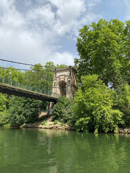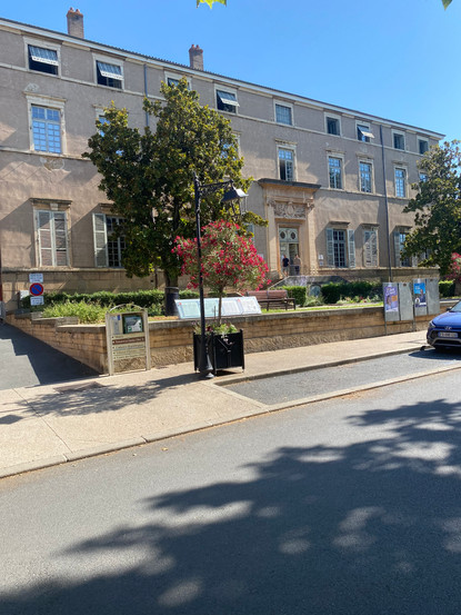 ´Trévoux war früher die Hauptstadt der Provinz Dombes. Trotz ihrer geringen Größe und der niedrigen Bevölkerungsdichte (ca. 20.000 bis 30.000 Personen im 17. und 18. Jahrhundert wir die Dombes wie eine große Provinz mit einem Gouverneur, einem Parlament, einem Münzhof und einem Kapitel in Trévoux ausgestattet. Nach der französischen Revolution verliert die alte Hauptstadt ihre fürstlichen Privilegien. Trotzdem wird noch bis 1950 das Silberziehen ausgeübt. Bis 1939 kam aus Trévoux ein entscheidendes Werkzeug zum Drahtziehen, welches einen erheblichen Beitrag zur industriellen Revolution leistete. 1865 versteht man es in Trévoux Diamanten so zu schneiden, dass man sie zur Herstellung von Zieheisen für die Drahtzieher verwenden konnte. Mit diesen war es möglich, große Mengen an Metallfäden sehr fein zu ziehen. Diese Informationen entnehmen wir einer Tafel vor dem erhaltenen Parlamentsgebäude in Trévoux. Von dem gegenüberliegenden kleinen Park hat man einen herrlichen Blick über das Saonetal. Rechts sind die Ausläufer der Monts du Beaujolais zu sehen, nach Süden gefolgt von den Monts Lyonnaises und den Monts d´Or. Die Stadtbetriebe kümmern sich gerade um die Kübelpflanzen. Das sehen wir häufig. Um die Bewässerung der Pflanzen wird sich gekümmert. Der Stadtführer verweist auch auf diverse noch erhaltene "Paläste" von reichen Bürgern, die hier "Hotel" genannt werden. Wir finden bei unserem Rundgang einige. Von außen sehen diese Gebäude nahezu schlicht aus. Eine Innenbesichtigung ist nicht möglich. Es wird schon wieder heiß und die 30 Grad Marke ist bereits geknackt. Wir machen uns auf den Weg zurück zum Boot.