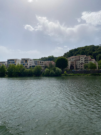 Vor Lyon haben wir noch eine Schleuse, in der wir nach kurzer Wartezeit alleine schleusen. Die Besiedlung wird nun schnell immer dichter. Zunächst kommen wir an den Ausflugszielen der Lyoner vorbei. Restaurant an Restaurant säumen die grünen Ufer. Und dann wie immer faszinierend die Einfahrt in die Großstadt. Überall auch große Steganlagen, an denen man auch festmachen könnte. Wir fangen den Eindruck vom historischen Lyon vom Wasser aus ein. Je mehr wir Richtung Rhone kommen, desto mehr Peniches, die als Wohnschiffe genutzt werden, liegen am Ufer. Wir begegnen mehreren Ausflugsschiffen und steuern stramm auf den Hafen Confluence zu. Kurz davor soll es eine Dieseltankstelle geben, die wir aber nicht sehen, dann sind wir schon an der Hafeneinfahrt. Wir werden gleich vom Hafenmeister in Empfang genommen. Er kassiert uns zunächst für 4 Tage ab. Zum Glück kann er sich an den Anruf von Victor erinnern, dass wir länger als 4 Tage bleiben müssen, da unser Rückflug nicht eher da ist. Dennoch will er den Anschluss erst nach unserer Rückkehr vereinnahmen. Der Hafen liegt an einem modernen Einkaufskomplex gegenüber dem Haus der Region. Von hier aus können wir mit der Straßenbahn unmittelbar ins Zentrum fahren und auch zum Rhone-Express Richtung Flughafen. Bis zum Flughafen brauchen wir eine knappe Stunde mit öffentlichen Verkehrsmitteln. Entlang des Hafenkais gibt es mehrere kleine Bistros und Cafés. Wir haben unseren Kühlschrank abgetaut und wollen vor unserem Kurztrip nach Hause keinen neuen Lebensmittel mehr bunkern. Daher wollen wir abends gern einen kleinen Imbiss am Kai nehmen. Die meisten Einrichtungen haben aber geschlossen, so dass wir am uns am Ende auf Fingerfood einlassen, das schlechteste Essen, welches wir seit unserer Tour je gegessen haben. Mit Victor treffen wir uns nicht, da Melanie Corona hat. So warten die Kleidchen, die wir für die Mädchen gekauft haben, bis zu unserer Rückkehr aus Berlin. Am Abend machen wir noch einen Spaziergang bis zum Place des Archives. Den Rückweg nehmen wir am Ufer dar Saone. Jetzt entdecken wir auch die Tankstelle und den Laden des Schiffsausrüsters. Wir erstehen noch eine Flasche "Waterclean" für unsere Frischwasservorräte. Zurück im Hafen erzählen wir noch kurz mit der Crew eines dänischen Seglers. Wir treffen sie nicht zum ersten mal. Auch andere Boote kennen wir schon. Die Dänen wollen nach Griechenland um den italienischen Stiefel herum. Es sind junge Leute mit Baby, die sich 2 Jahre Zeit nehmen. Als Koch hat der Däne viele Überstunden. Er ist sicher, nach seiner Rückkehr wieder einsteigen zu können. Die Frau arbeitet mobil in der Filmbranche. Alle sind sehr entspannt. Wir wünschen ihnen alles Gute für Ihre Reise.
