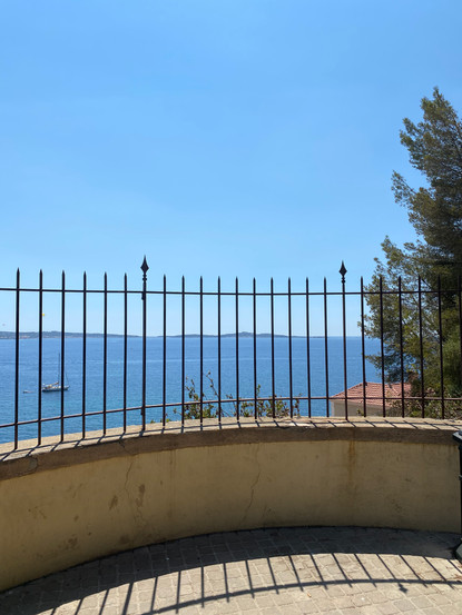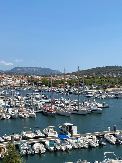 Am Mittwoch haben wir uns nur eine kleine Strecke vorgenommen. Wir wollen nach Sanary-sur-Mer. Passender Weise hatte ich zu meinem beruflichen Abschied ein Buch über das Leben und die Liebe von Künstlern vor und zu Beginn des zweiten Weltkrieges bekommen und natürlich gelesen. Florian Illies lässt uns in seinem Buch:“Liebe in Zeiten des Hasses“ eintauchen in eine Zeit mit extremen politischen und kulturellen Spannungen. Der Weg einiger Künstler auf Ihrer Flucht vor dem Nationalsozialismus führt nach Sanary-sur-Mer. Wir wollen uns in Sanary-sur-Mer einige der beschriebenen Schauplätze des Exils von Künstlern anschauen. Vorher nutzen wir den kurzen Weg, um noch mal einen Abstecher zum Badestop vor den Îles des Embiez zu machen. Bei diesem schönen Wetter nutzen viele Boote diesen Hotspot, aber wir finden einen Platz. Trotz der geschützten Lage kann der Wind etwas angreifen und auch die immer zu schnell vorbeifahrenden Boote tun ihr Übriges, damit wir nicht ganz ruhig liegen. Wir haben später auch das Gefühl, dass es uns ein Stück versetzt hat. Um anderen Booten nicht zu nahe zu kommen, korrigieren wir noch mal. Ansonsten ist der Badespaß ungetrübt und auch Fische sind im klaren Wasser zu entdecken.