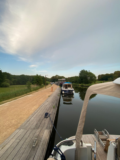 14:00 nehmen wir die nächste Schleuse. Das Schleusenpersonal ist nicht verpflichtet, uns die Leine abzunehmen. Heute haben wir Glück. Ich kann die Schleusenleine anreichen und wir schleusen die gesamte Fahrt an der Mittelklampe Steuerbord, insgesamt 11 Schleuse mit einem Hub von jeweils gut 3 Metern. In Heidwiller soll es einen Anlegeponton Steuerbord geben. Den können wir nicht entdecken und so machen wir backbord an einer Raststelle fest. Es ist wieder schöne Abendstimmung. Leider klappt es weiterhin mit dem Internet nicht richtig, so dass wir mit dem Blog in Verzug kommen.