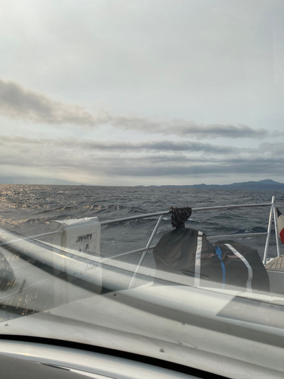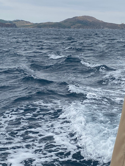 Es wird weiter windiger. Für die nächsten Tage sind hohe Wellen, starker Wind, Gewitter und Regen angesagt. Wir nutzen das Zeitfenster am Mittwochvormittag, am 17. August, um nach Spanien zu fahren. Eine spanische und katalanische Fahne konnten wir noch in Port Vendres besorgen. Die Strecke ist nicht weit. Weniger als zwei Stunden planen wir bis Puerto de la Selva an der Grenze zum Parc Natural del Cap de Creus im Norden. Es ist noch wenig Wind, aber die Welle hat es in sich. Zum Glück kommt sie leicht schräg vom Heck und treibt uns vor sich her. Dennoch fährt es sich besser mit ein paar Knoten mehr. Die Welle ist anfangs noch lang und wird mit 0,7 m ausgewiesen, damit ist die Steigung zwischen Wellental und -Berg deutlich höher. Frank hat versucht, für uns digital im Hafen einen Platz zu reservieren. Dieses System scheint nicht zu funktionieren, denn bisher haben wir noch keine Antwort erhalten. Insofern schauen wir nach Ausweichhäfen. Ggf. müssen wir ein Stück zurück nach Port Llanca. Wir sind ganz froh, als wir mittags Puerto de la Selva erreichen. Im Hafen ist es etwas ruhiger. Die Verständigung mit der Hafenmeisterei läuft auf englisch, mehr schlecht als recht. Kurzum, zunächst bekommen wir gesagt, dass der Hafen voll ist und kein Platz für uns da sei. Wir wissen, dass wir zu früh sind, es wird eventuell noch eine Abreise erwartet. Eigentlich soll man erst ab 13 Uhr den neuen Hafen anlaufen. Wir haben riskiert früher da zu sein, da das Wetter ungemütlich werden soll. Was nun? Uns wird gesagt, wir sollen es in Llanca versuchen, doch dann wendet sich das Blatt, es gibt doch noch einen Platz für uns. Uns fällt ein Stein vom Herzen. Die Einweisung in den Platz ist undeutlich, so dass wir erst Anlauf für den falschen Platz nehmen, aber dann schiebt Frank uns in die enge, für uns vorgesehene Lücke. Mit unseren Fendern links und rechts liegen wir unmittelbar an den Nachbarbooten. Auf der einen Seite haben wir eine kleine Beneteau und auf der anderen Seite ein Segelboot mit einer französischen Familie, die gerade noch nicht da ist. Während Frank uns anmelden geht, komme ich mit dem nächsten Segelboot dahinter ins Gespräch. Auch ein Franzose mit zwei Kindern aus Annecy. Er spricht relativ gut Deutsch, da er in Luxemburg aufgewachsen ist. Die Familie reist bald wegen des Wetters in Richtung Port Ventes ab, da leben seine Eltern im Sommer. Wir buchen für drei Tage. Der Preis ist stattlich, das Teuerste, was wir bisher kennengelernt haben. Wir zahlen 85 € pro Nacht. Das Wetter zieht sich zu und der Wind frischt immer weiter auf. Wir machen noch einen Bummel durch den Ort. Geschäfte, außer der Supermarkt, öffnen erst wieder 17 bzw. 18 Uhr. In den Restaurants wird nach 15 Uhr noch Mittag gegessen. Wieder ein anderer Rhythmus, als der, den wir in Frankreich kennengelernt haben. Abends entlädt sich ein heftiges Unwetter. Zum Glück haben wir alles reingenommen und Leinen wie Fender noch mal kontrolliert. Von den vor uns liegenden Bergen zieht dröhnend ein Gewitter herein, Blitz und Donner in schneller Folge, Starkregen mit Hagel und heftiger Wind. Apokalypse - die wir angespannt aus unserem schwimmenden Zuhause beobachten. Unsere Dachfenster lassen Nässe durch, so dass wir damit beschäftigt sind, Schaden auf dem Mobiliar und der Technik abzuwenden und Tropfenjäger spielen. Leider hat das Abkleben der Fenster die bisherige Hitze nicht überstanden. An den Überlappungen und Andruckstempeln bahnt sich das Wasser einen Weg. Nicht schlimm, aber man kann es auch nicht unbehandelt lassen. Es dauert lange, bis das Gewitter abzieht, der Wind bleibt. Das Rettungsschiff des Hafens fährt raus. Vor dem Strand haben drei ankernde Segelboote im Unwetter ausgeharrt. Wir beobachten, wie einer versucht, sich noch mal in eine bessere Position zu bringen. Die Nacht ist stürmisch. die Fender knarzen an den Nachbarbooten. Das setzt sich auch am Folgetag fort. Durch den Regen ist unser Boot schön sauber geworden. Hier zeigt sich, dass es gut poliert ist.