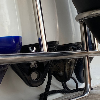 Wir haben mit vielen Bootsfreunden gefachsimpelt, gelesen und abgewogen. Und wir hatten eine guten Edelstahlbauer. Marek hat unsere kreative Anpassung aus allen Erfahrungen, die wir so zusammen gesammelt haben, baulich umgesetzt. Und das Beste ist, während unserer Fluss- und Kanalfahrten können wir das Gestell demontieren.