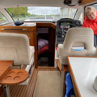 Sowohl auf Grund unserer Erfahrungen mit der Greenline, die ein Halbgleiter war, als auch unsere Pläne, die Ost- und Nordsee und das Mittelmeer zu befahren, haben wir am Ende der Saison 2020 Ausschau nach einem dafür geeigneten Boot gehalten . Fündig wurden wir in Kroatien – eine Nimbus 335 C . Gebaut in Schweden, ist die 10.20 m lange Nimbus rauwassertauglich, ausgestattet mit einem Volvo-Penta D 4 mit 300 PS, Radar, Stromgenerator und hat für 2 Personen genügend Platz. Auch was den Komfort an Bord betrifft, lässt diese auf kleinsten Raum keine Wünsche offen. Das mit dem kleinen Raum und den Wünschen wird sich zeigen. Wir waren zwar schon mehrere Wochen mit der "Blue Fantasia" - so heißt unser Boot - unterwegs, unser jetziger Törn soll allerdings deutlich länger dauern. Wir lassen das rankommen. Wenn wir uns doch nerven sollten, machen wir vorzeitig kehrt. Wir wollen Spaß haben und keinen Stress.