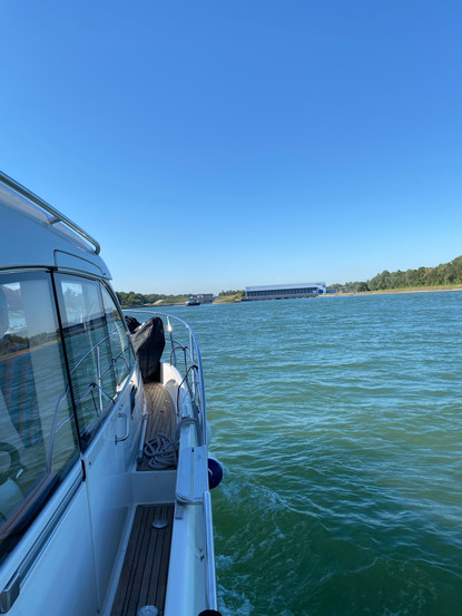 Als erstes wird nach dem Anlegen gekocht. Wir sind wieder 5 Stunden gefahren und hungrig. In der Zwischenzeit kommt ein österreichisches Boot in den Hafen - 2 Männer und ein Hund. Völlig unerschrocken und neugierig springt der Hund auf den Steg und ist kaum zu halten. Wir lernen den Eigner Markus kennen. Er sprudelt vor Geschichten über seine Erlebnisse auf den französischen Gewässern und wie immer bei solchen Begegnungen lernen wir wieder viel. Er hilft uns auch, unsere Route für morgen zu präzisieren. Wir nehmen die Hinweise gerne an und fühlen uns immer besser vorbereitet auf die kommenden Tage.