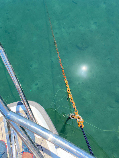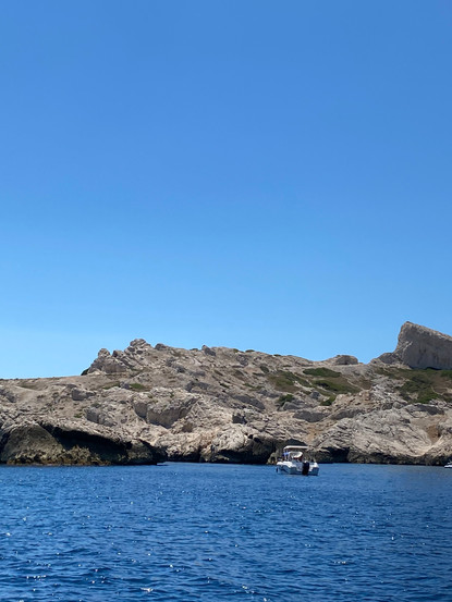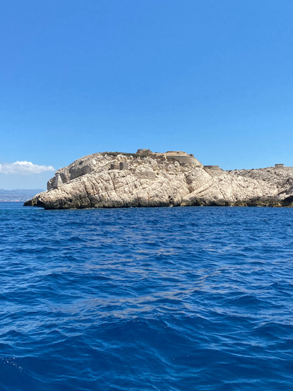 Montag frühstücken wir frisches Baguette und Croissons und dann geht es los. Das Ablegemanöver klappt gut. Wir lösen gemeinsam die Kette und fahren erst los, nachdem Leinen und Kette wieder auf den Meerengrund gesunken sind. Dann nutzen wir gleich noch die Tankstelle. Es ist Selbstbedienung und pro Karte kann man maximal für 150 € tanken, bei einem Preis von 2,36 € ungefähr ein Drittel dessen, was wir aktuell tanken können. Wir arbeiten daher mit 2 Karten. und tanken nur 126 Liter. Und dann geht es los. Erst während der Fahrt rufe ich in der Capitainerie Marseille an. Erst sagen sie, sie haben keinen Platz und dann besprechen sie sich, dass sie doch ab 14 Uhr einen Platz haben. Und nun? Bei gemütlicher Fahrt wären wir bereits 12:30 Uhr in Marseille. Wir schauen auf die Karte und entdecken ein Ankerzeichen vor den Iles du Frioul. Wir entscheiden mal dorthin zu fahren und uns die Sache anzuschauen. Obwohl wir die Inselgruppe lange vor Augen haben, dauert es bis nach 12 Uhr, um dort anzukommen. Einige Schiffe ankern in den Calanques ziemlich nahe an den Felsen. An einer Stelle gibt es sogar Moorings. Natürlich sind wir unsicher. Schon ziemlich nahe an den Felsen beträgt die Wassertiefe immer noch knapp 14 Meter. Und dann probieren wir es. 27 Meter Kette sind draußen und der Anker scheint zu halten. Wir beobachten die Schiffslage noch eine Weile und das Spiel im Wind und dann ist es einfach nur schön. Glasklares Wasser bis auf den Grund, Fische schwimmen vorbei, das Fort liegt vor uns, die Felsen um uns herum. Allein für diesen Moment hat sich unsere Reise schon gelohnt. Wir gehen baden, trauen uns aber in diesem unbekannten Gewässer nicht von der Badeleiter weg. Und dennoch ist es ein Traum.