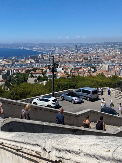 Dienstag nach dem Frühstück planen wir unseren weiteren Turn. Wir wollen versuchen, in der Calanque Miou zu übernachten und rufen den Hafen an. Wir sollen uns morgen melden, wenn wir kommen. Hoffentlich klappt das. Nun müssen die Vorräte aufgefrischt werden. Der Supermarkt ist ganz in der Nähe. Am Nachmittag schauen wir die Stadt an. Mit dem Bus geht es hinauf zur Notre Dame de Garde. Der Ausblick ist so fantastisch, wie ihn die Reiseführer beschreiben. Zurück fahren wir mit der Bimmelbahn, sehr witzig und touristisch.
