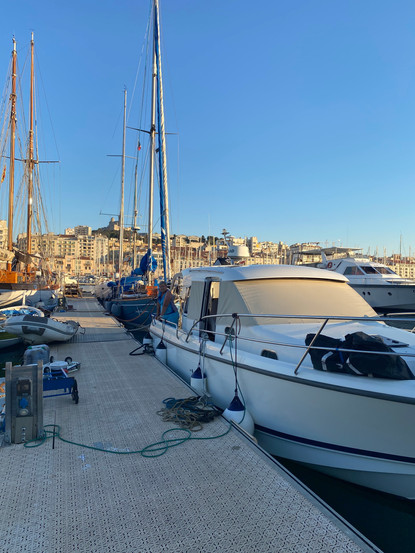 Ein paar Plätze weiter liegt ein französischer Segler. Er lässt es sich gut gehen und uns an seiner guten Laune teilhaben. Bei einem Smalltalk stellt sich heraus, dass er nach der Wende in Deutschland in Berlin stationiert war. Im französischen Quartier in Tegel. Dazu fiel ihm ein: Weißbier und Bratwurst. Klingt irgendwie lustig, wenn ein Franzose diese Worte mit Inbrunst spricht. Abends kommen viele Boote in den Hafen, Familien, die das Wochenende auf dem Wasser verbracht haben. Alle befreien ihre Boote sorgfältig von Salzwasser. Damit gibt es bislang kein Problem in Frankreich. In Deutschland undenkbar. Wir rufen den Vieux Port Marseille an, da wir morgen dort einlaufen wollen. Wir sollen am Montag ab 10 Uhr wieder anrufen. Nun gut. Wir navigieren schon mal nach Marseille. Der Tag geht zu Ende und es wird langsam ruhig in Sausset-les-Pins.